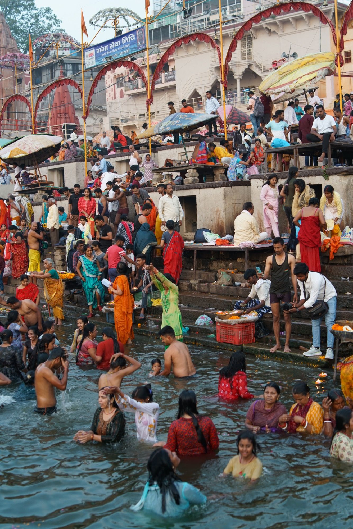 Varanasi. The smell of death hangs over this city. You can smell it as soon as you leave the airport. It is both - fascinating and a little frightening to walk past the "gats" with your camera. People believe that Varanasi is a holy city. And that the Ganges, into which the ashes of the cremated dead bodies are thrown, is a holy river whose bath is the most beautiful thing you can do in your lifetime. Varanasi is loud and colorful. Full of music and happy people. The locals I met here told me that they love their city and that there is no place in the world which is more beautiful than Varanasi.